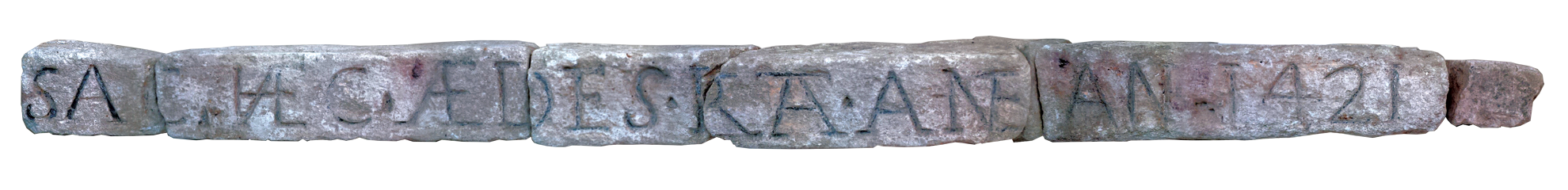 Una ulteriore conferma dell’epoca di costruzione ci viene da una incisione su pietra secondo la quale risale genericamente a prima del 1421. E’ custodita all’interno della chiesa dopo che è stata rimossa dall’edificio durante uno dei diversi interventi di restauro. Dato il suo contenuto è probabile che fosse stata collocata sulla facciata in occasione di un più antico restauro. La datazione potrebbe riferirsi all’avvio dell’amministrazione aragonese e alla necessità di tramandare nel tempo che la chiesa era già esistente, non potendo, evidentemente, stabilirsi, neanche allora, l’anno esatto di costruzione.