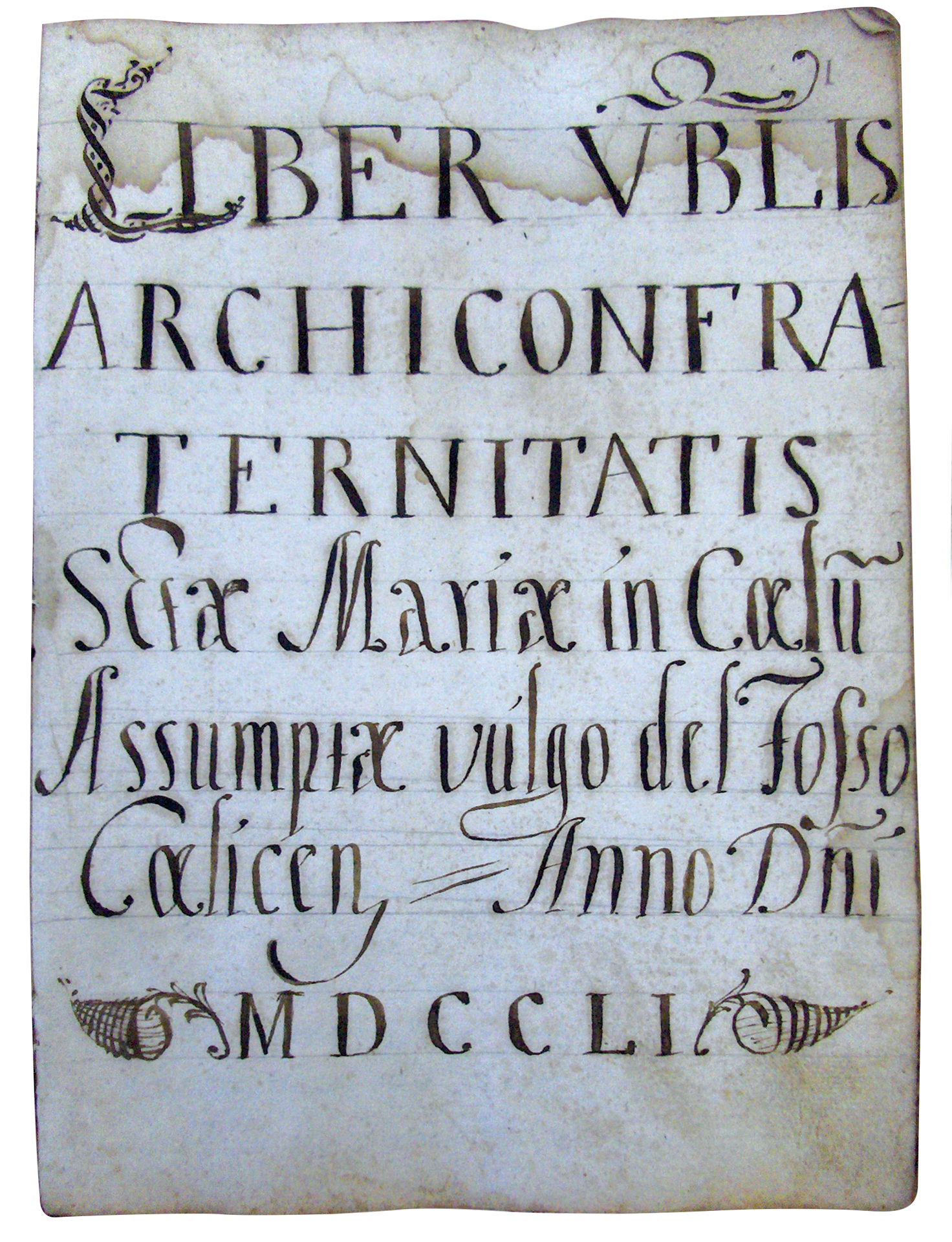 Ritratto portale ingressoScavo archeologico casa natale 1999/2000Luis Berrueco, prima del 1750, Chiesa di San Martino, Puebla (Messico).Foto Prof. Jaime LaraIscrizione attestante l’esistenza della Chiesa dell’Assunta prima del 1421Verbale della Confraternita di Santa Maria Assunta1 - 5<>