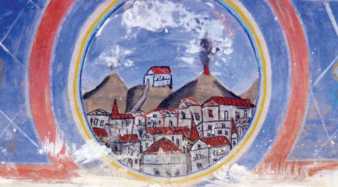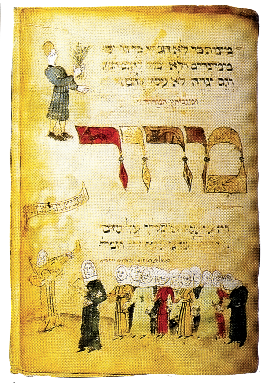PanoramaMachazòr con frammento di Agadà. Catalogna, XIV secolo, con l’uscita degli ebrei dall’Egitto.Libro di preghiere, Germania orientale o meridionale, XV secolo. Siddùr (libro di preghiere), Germania orientale o meridionale, XV secolo.Pittura murale raffigurante la frazione Minnitu sovrastata da tre monti, di cui l’ultimo a destra è un vulcano.5 - 5<>